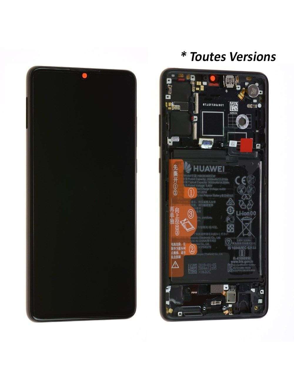 Écran Huawei P30 Noir + Châssis + Batterie (Toutes Versions) Origine